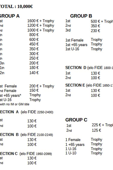 Monetary prizes of €1,000 or more will be paid via bank transfer, while all other prizes will be paid in cash.