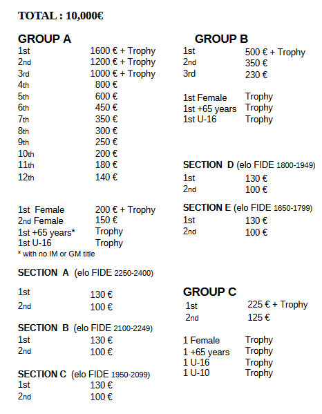 Prizes for the overall classification, groups, sections, age, and women's category are not cumulative. The highest prize will always prevail.