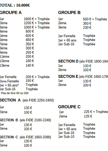 Les prix monétaires ne seront pas partagés entre les joueurs à égalité de points.
