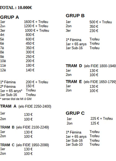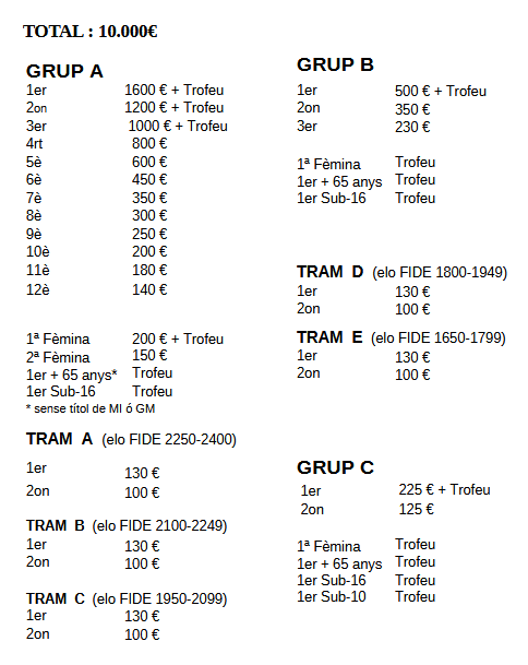 Els premis monetaris no es repartiran entre els empatats a punts.
